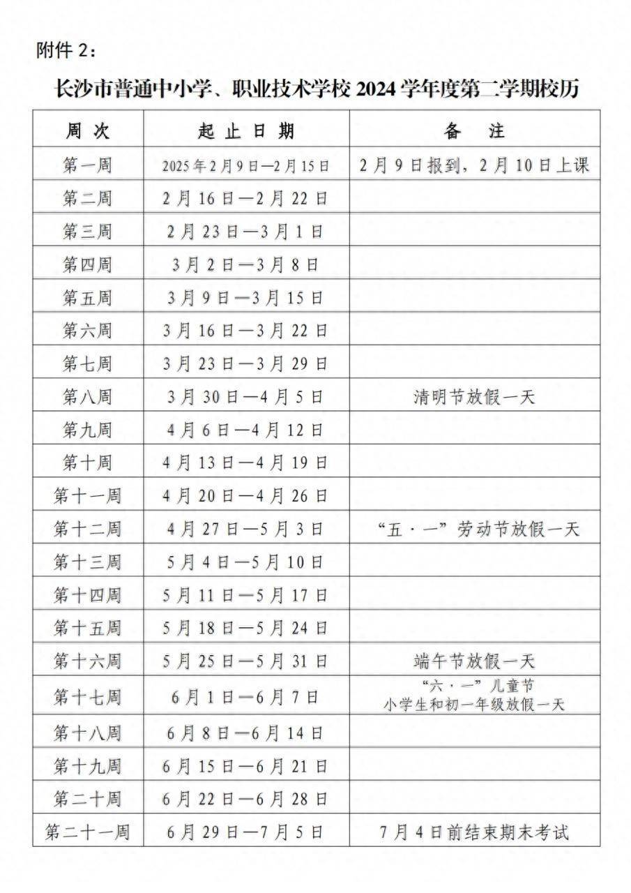 长沙市教育局公布2024学年度和2025学年度校历,根据校历,今年长沙市中小学暑假从2025年7月6日开始。